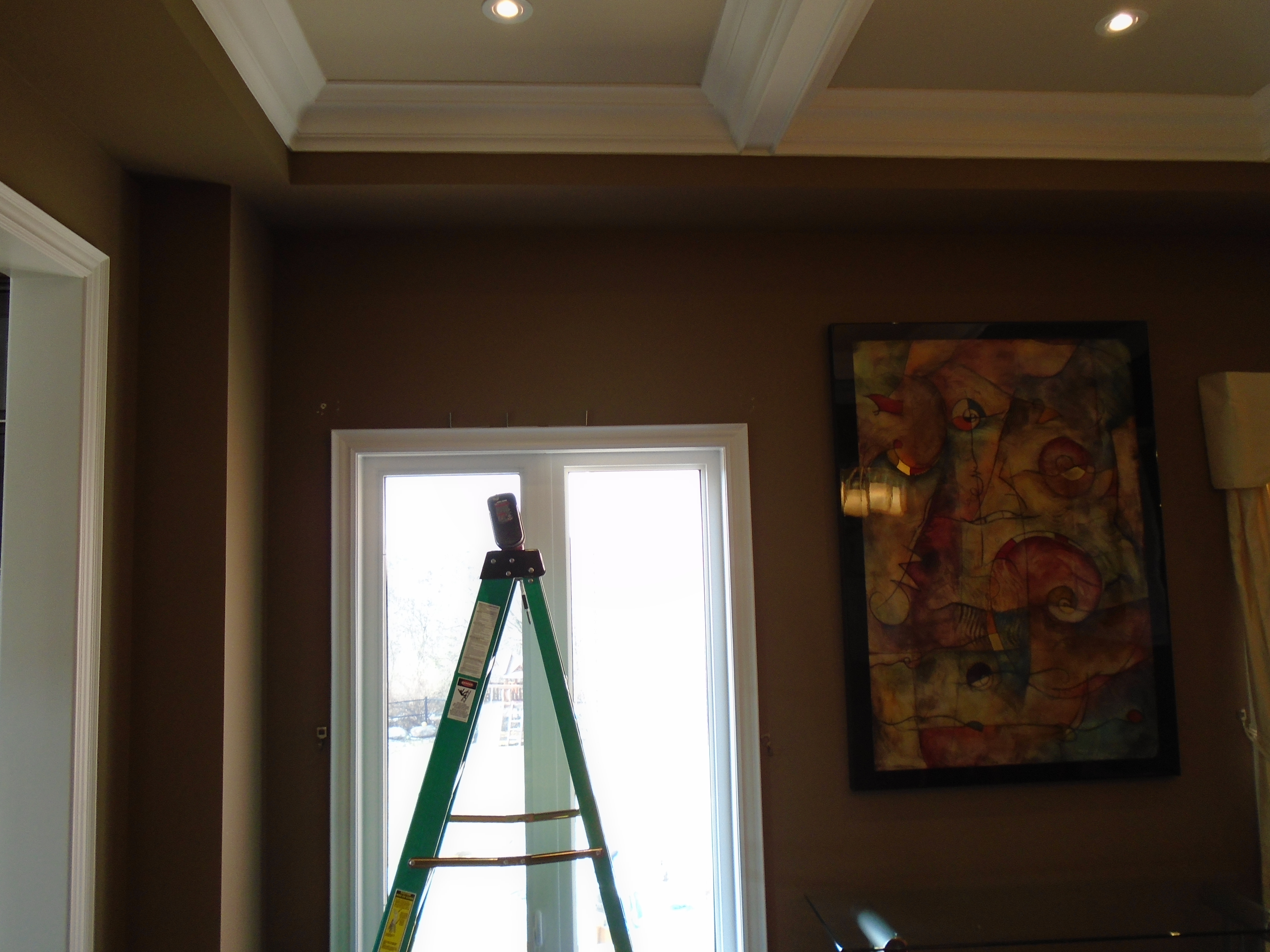 Tall windows are hard to reach, and professional hand can be particularly helpful. The rod for this window was installed on the height of 15 feet.